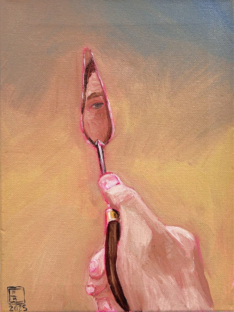 My current body of work is a series of self-portraits in oil that represent the many different aspects of seeing myself, both as an artist and as a person. I consider a self-portrait to be one of the most important things an artist can create. Not only is it a physical depiction of the artist’s physical likeness, it also serves as a view into their deeper persona, delving into themes of identity, vulnerability, and self-awareness.